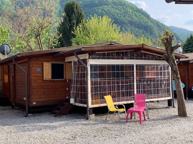 Op camping direct aan het Luganomeer: ons 5 persoons chalet met AIRCO!!!