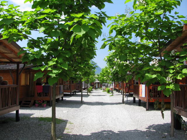 Het chalet is volledig en kindvriendelijk ingericht en geschikt voor maximaal 5 personen met privé parkeerplaats naast het huisje. Het is schaduwrijk gelegen in een rustig straatje (Zona Mandras, nr 240) met veel ruimte, ook voor kinderen, met uitzicht op de Italiaanse Alpen en ca. 80 meter van het meer. Totale oppervlakte is 40 m2 (het chalet is 30 m2 en de veranda is 10 m2). Huisdieren en roken zijn NIET toegestaan.