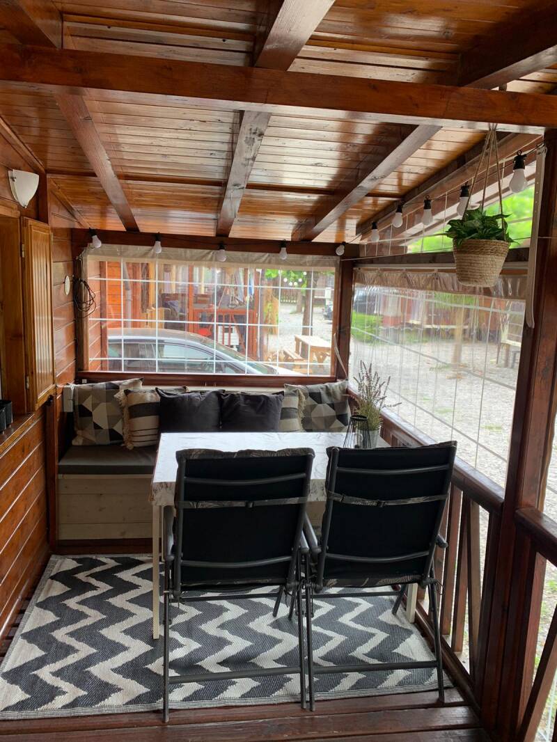 Veranda: Een overdekte veranda voorzien van zeil (voor de wat killere dagen)